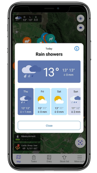 Using Open-Meteo's forecast service, we've added the ability to see current weather and a 7-day forecast for your farm’s location.